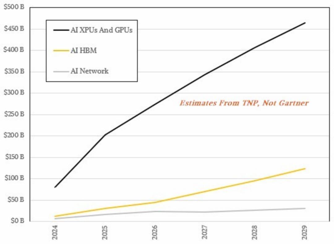 今天,我们将对Gartner 的年度全球半导体销售细分数据进行深入分析和补充,特别关注 AI XPU、HBM 内存和网络收入,因为它们正以越来越快的速度增长,并在每年销售或委托制造的芯片中所占比例越来越大。